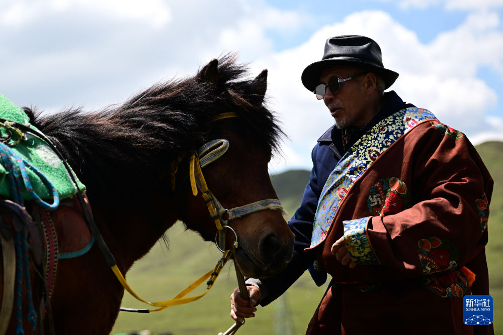 6月25日,万卓在整理马缰绳。新华社记者 张龙 摄
