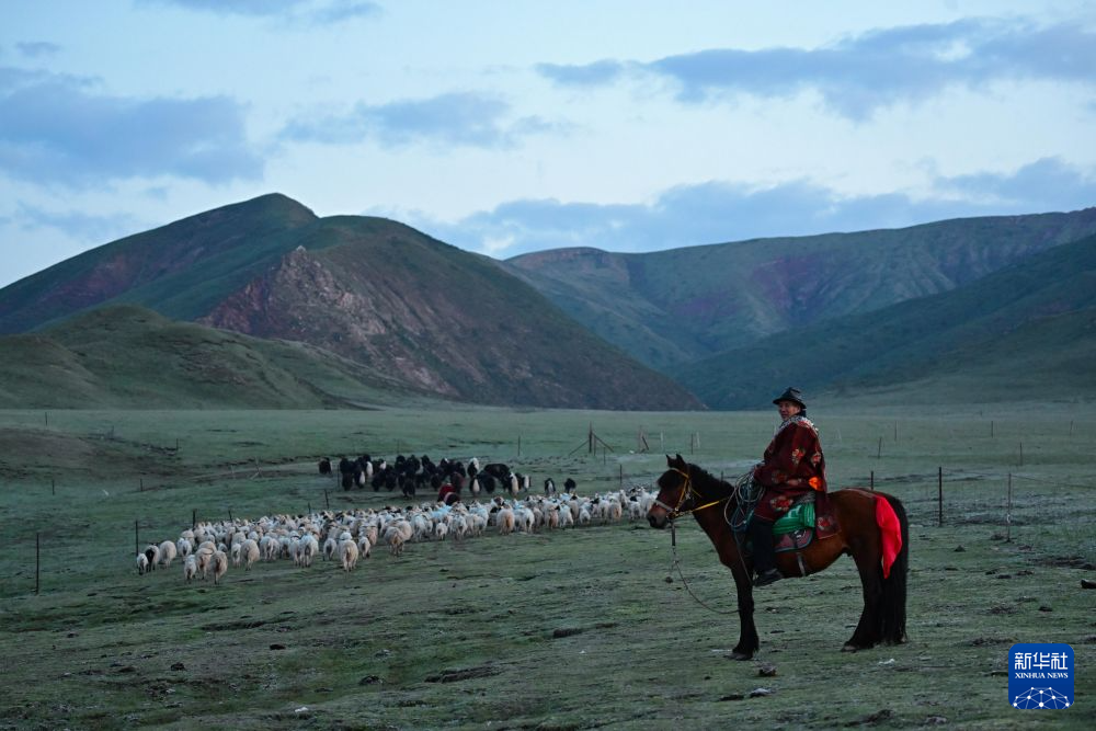 6月25日清晨,万卓在转场路上。新华社记者 张龙 摄