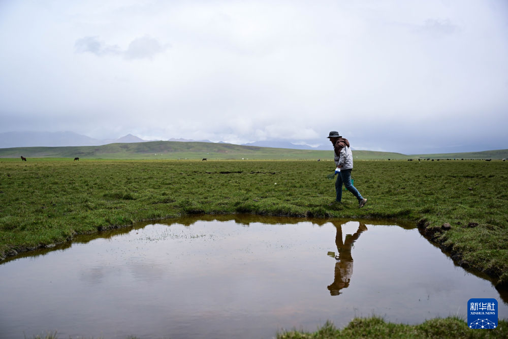 6月26日,先巴尖措前往夏牧场的水源地提水。新华社记者 张龙 摄
