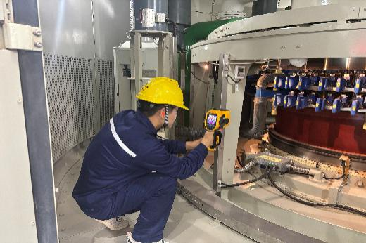 图为运行人员检查发电机层消防设施
