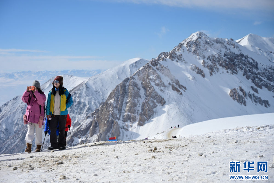 1月1日,登山爱好者在攀登岗什卡雪峰。新华社记者 齐芷玥 摄